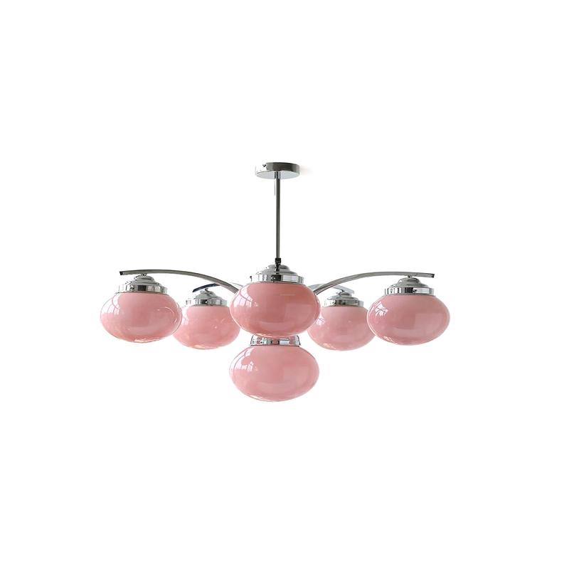 The Pink Globe Modern Chandelier boasts a sophisticated design that adds a touch of refinement to any space. Its harmonious blend of pink and white hues creates a tranquil atmosphere, making it a captivating focal point. Indulge in the opulence of this chandelier and illuminate your living space.
