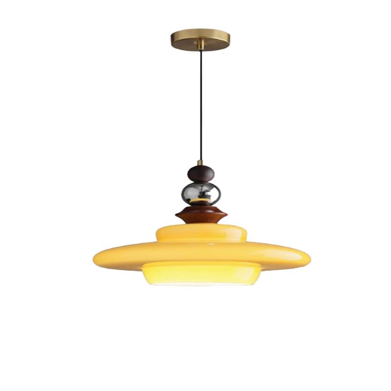 The Vintage UFO Glass Pendant Lamp captures the iconic flying saucer silhouette of the mid-century space age. Suspended by slender cables or chains, it casts a soft, ambient glow, making it a striking decorative statement or practical lighting in a kitchen, dining room, or retro-inspired interior.