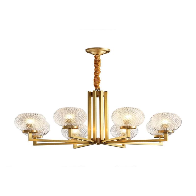 Ribbed Glass Brass Chandelier