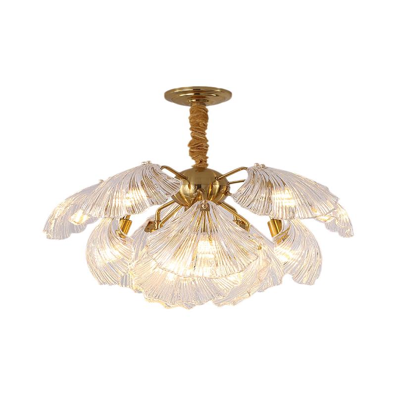 The impressive Ribbed Shell Chandelier illuminates any room with its captivating design. This versatile chandelier is perfect for both large and small spaces, providing ample lighting and making a bold statement. Elevate your living space with this stylish and functional decorative piece.