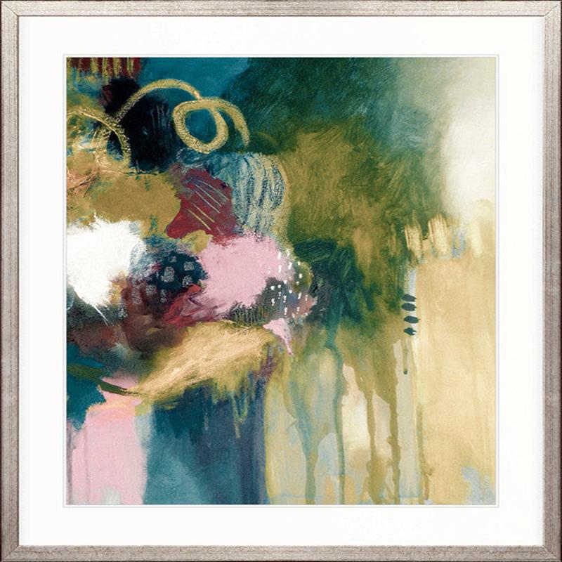 The Romsey Abstract collection bursts with vibrant, painterly energy. Rich shades of teal, blush, golds and indigo blend with expressive brushstrokes, drips, and layered textures, creating dynamic, playful compositions full of movement and depth.