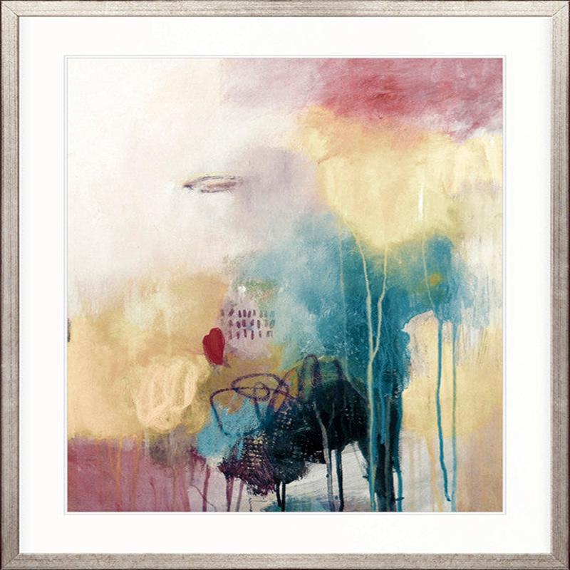 The Romsey Abstract collection bursts with vibrant, painterly energy. Rich shades of teal, blush, golds and indigo blend with expressive brushstrokes, drips, and layered textures, creating dynamic, playful compositions full of movement and depth.