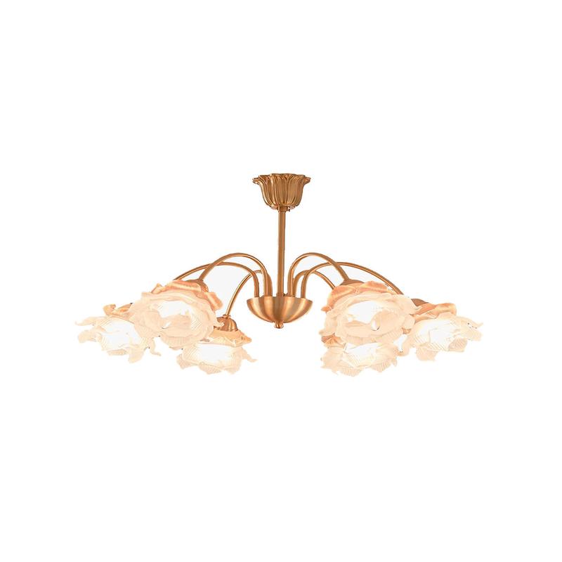 The Roses Chandelier is crafted with elegant glass and copper, exuding luxury and romance. It brings a warm ambiance to your living room, making it an exquisite addition to your space.