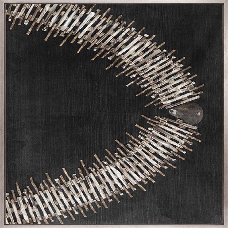 Derived from our textural series, these intricate artisinal designs are arranged in rhythmic, organic patterns over deep charcoal and soft ivory backdrops – offering refined detail, modern elegance, and a sense of tactile luxury to sophisticated interiors.