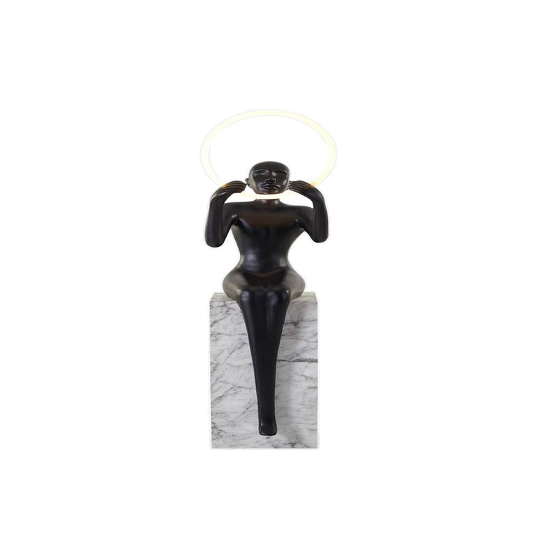 The Sitting Sculpture Floor Lamp features a minimalist figure in a seated pose paired with a luminous sphere, blending artistic form with functional lighting. Its serene design and soft glow bring a calming yet stylish touch to living rooms, bedrooms, or studios.