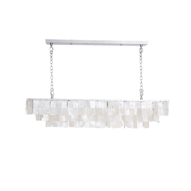 Due to the cascading design which is composed of the hand-strung square mother-of-pearl, this pendant light dances trippingly and adds a touch of dynamic and fun when responding to the gust of wind.