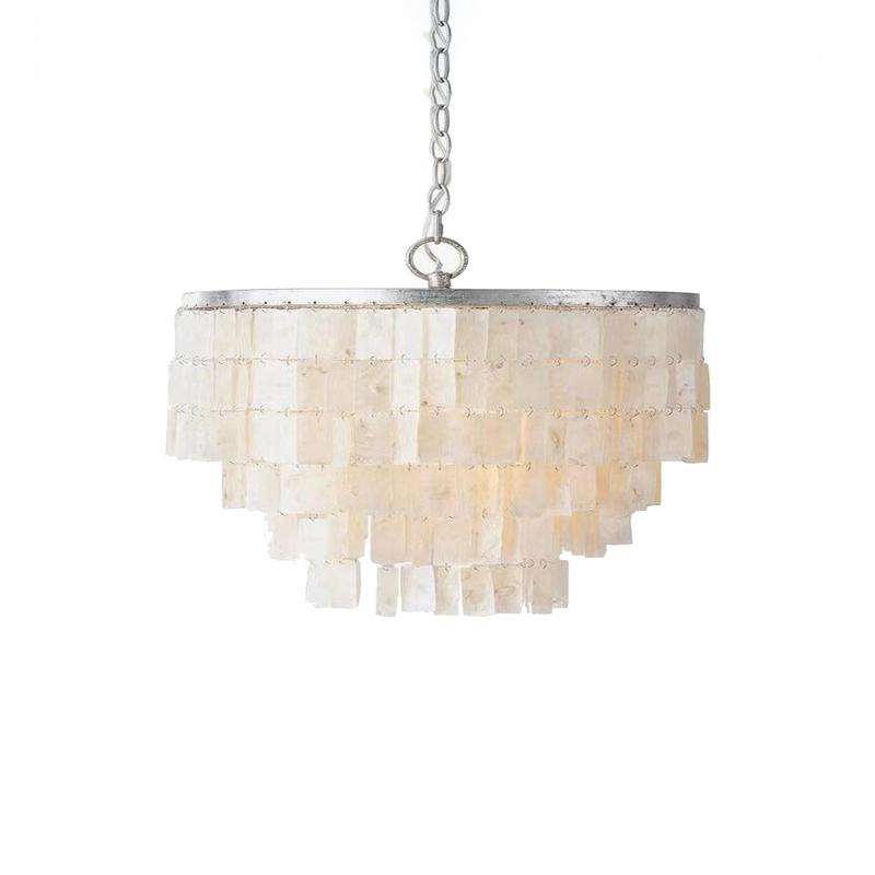 The light-catching iridescence of our exclusive Capiz Chandelier will draw attention even when the lights are off. 3 tiers of more than Capiz shells cascade from an iron frame, emitting a warm glow of diffused light.