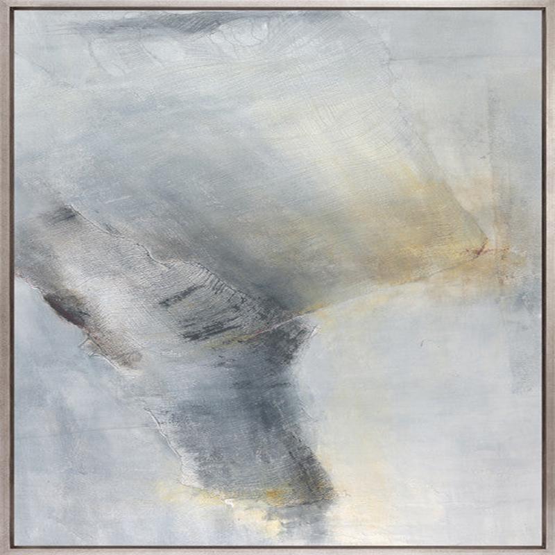 A serene collection of soft, misty abstracts in delicate tones of blue-grey, white, and subtle taupe. Gentle textures and blurred forms evoke drifting clouds and distant horizons, bringing a sense of calm and spaciousness to any interior.