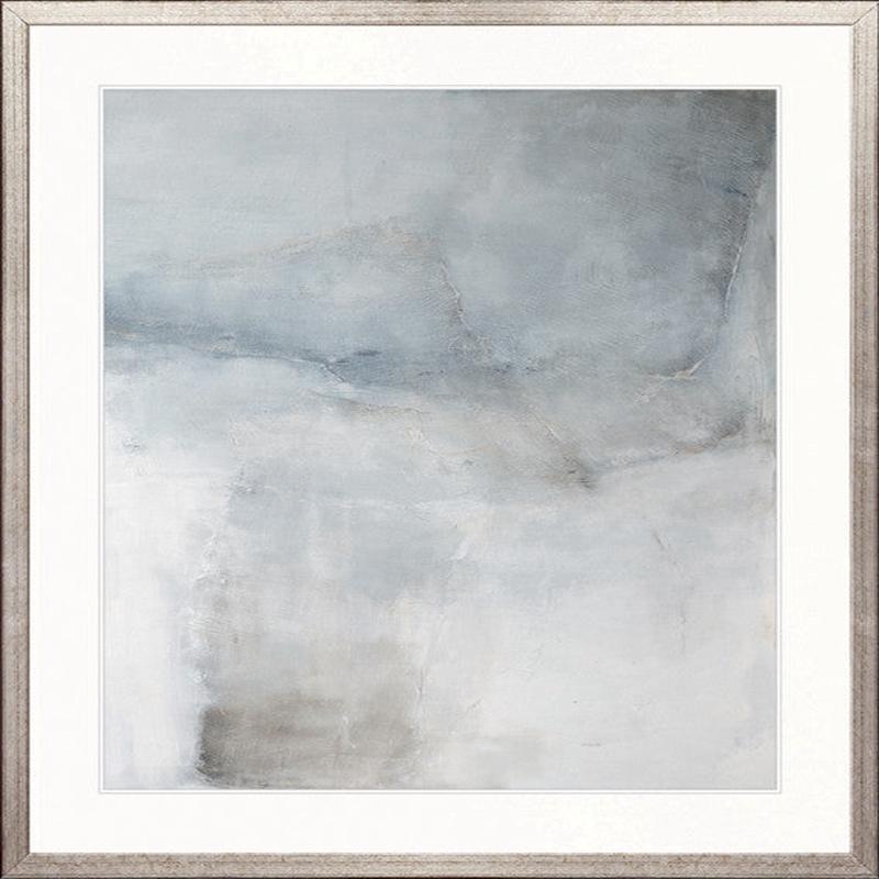 A serene collection of soft, misty abstracts in delicate tones of blue-grey, white, and subtle taupe. Gentle textures and blurred forms evoke drifting clouds and distant horizons, bringing a sense of calm and spaciousness to any interior.