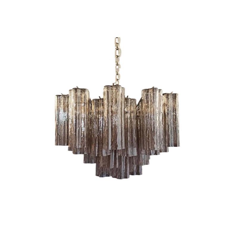 The Smoked Murano Glass 36-Tube Chandelier is a unique lamp that uses 36 high-quality smoked Murano glass tubes to create a modern and classic visual effect. Each glass tube is carefully hand-blown, showing the exquisite craftsmanship and transparency of Murano glass. The design of the lamp body presents smooth lines, and the smoky tones of the glass tubes give it a mysterious and warm atmosphere, suitable for a variety of modern homes or commercial spaces.