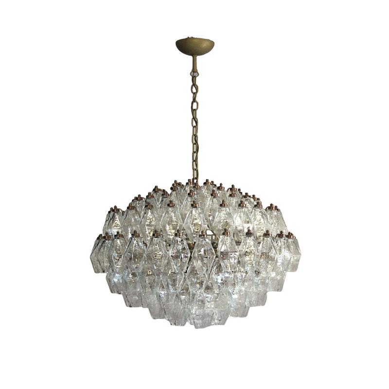 The Clear Murano Polyhedron Glass Chandelier is a timeless masterpiece that exudes elegance and sophistication. Crafted from meticulously hand-blown Murano glass, this spherical chandelier features a cascading arrangement of faceted polyhedron-shaped glass elements. Each glass piece is uniquely textured, enhancing its ability to reflect and refract light, creating a dazzling interplay of illumination and shadow.