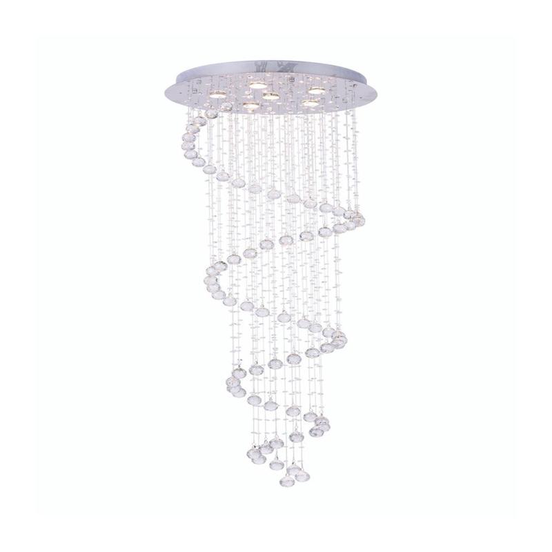 The Spiral Raindrop Crystal Chandelier is a stunning addition to any space. Featuring K9 crystal beads with exceptional clarity and high refractive index, this modern fixture provides a stylish sparkle and feeling of movement. Its sleek design and elegant spiral shape make it perfect for stairwells, foyers, and high-ceilinged areas.