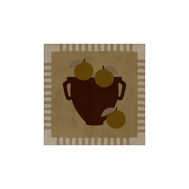 This artwork is a reproduction of a digital artwork, thoughtfully created with heart and imagination by artist Shatha Al Dafai. Rendered in soft earthy tones, the vases, lemons, and oranges evoke a grounded calm, blending natural warmth with timeless simplicity.