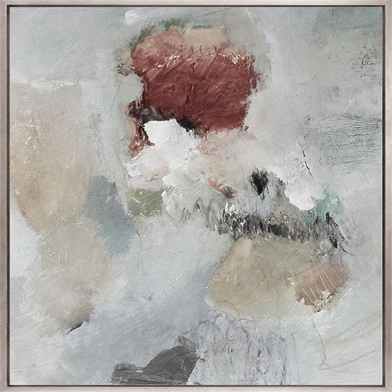 A beautifully delicate series featuring soft, painterly textures in warm neutrals, muted greys, and subtle highlights of deep rust and black. These abstract works create a calming, sophisticated atmosphere with organic movement and understated elegance.