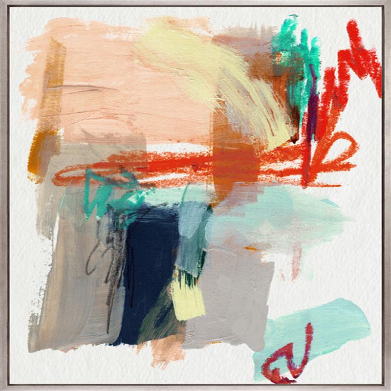 Bold, expressive brushstrokes collide with energetic line work in this playful abstract trio. Featuring vibrant reds, navy, soft peach, and aqua, these dynamic compositions add movement, creativity, and a modern edge to contemporary spaces.