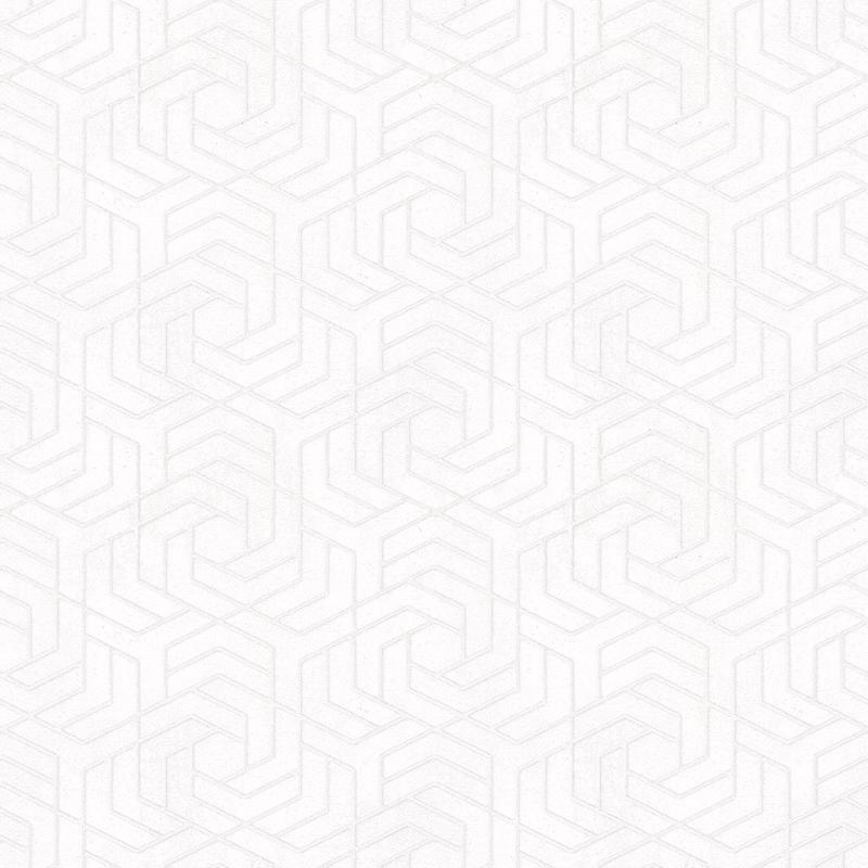 This wallpaper features a refined, smaller-scale geometric pattern, creating a structured, architectural look that works seamlessly in a variety of interior styles. The design is rendered in neutral tones, offering versatility while maintaining a clean, modern aesthetic. The texture of the wallpaper aligns perfectly with the linework of the geometric pattern, adding a tactile dimension that enhances the visual impact. The background has a distressed, uneven finish, introducing an additional layer of depth and character to the overall design.