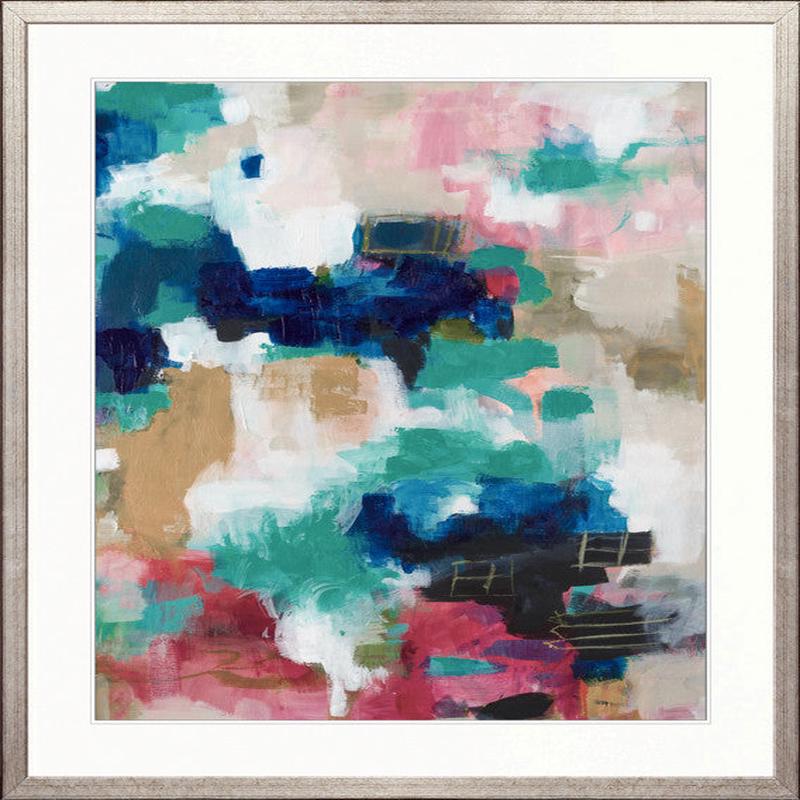 This vibrant collection bursts with bold brushstrokes and layered colour. Turquoise, fuchsia, indigo and soft neutrals dance together, creating energy and movement. Perfect for brightening contemporary spaces with playful elegance and abstract expression.