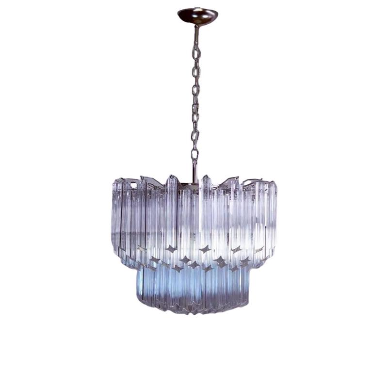Venini Style Murano Quadriedri Chandelier is an elegant and luxurious chandelier, whose design is inspired by the classic Venetian glass craft. The chandelier is composed of multiple vertically arranged transparent Murano glass “Quadriedri”. These glass rods are rectangular prisms and are cut through exquisite craftsmanship to show the ultimate light and shadow effect. The glass is extremely transparent and reflects crystal clear light under the light, creating an elegant and charming atmosphere for the space.
