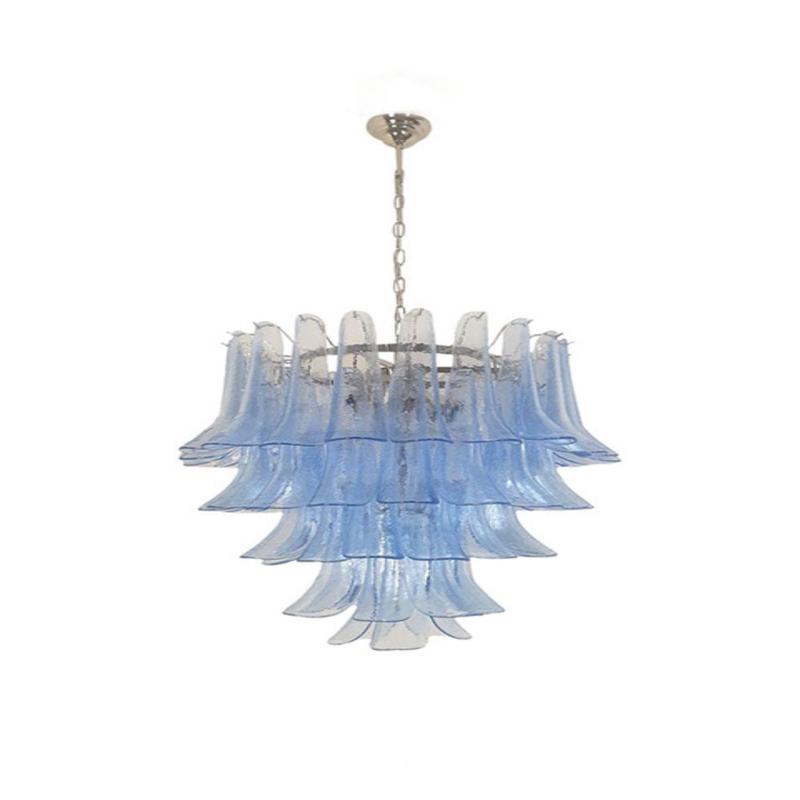 Vintage 1980s Blue Murano Glass Petal Chandelier