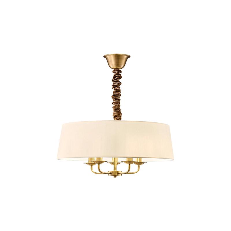 This vintage brass fabric pendant lamp features a brass frame and soft fabric shade, providing a warm, inviting glow. Its timeless design enhances the elegance of any room.