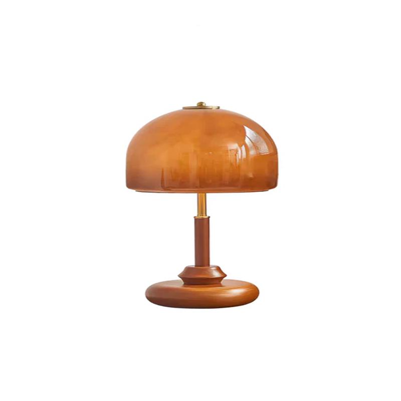 This vintage glass mushroom table lamp cleverly combines rugged solid brass construction with elegant curved glass, creating a unique vintage vibe. The handcrafted solid brass body with a distressed finish exudes authentic industrial charm. The clear curved glass shade softens the light, creating a warm and inviting effect.