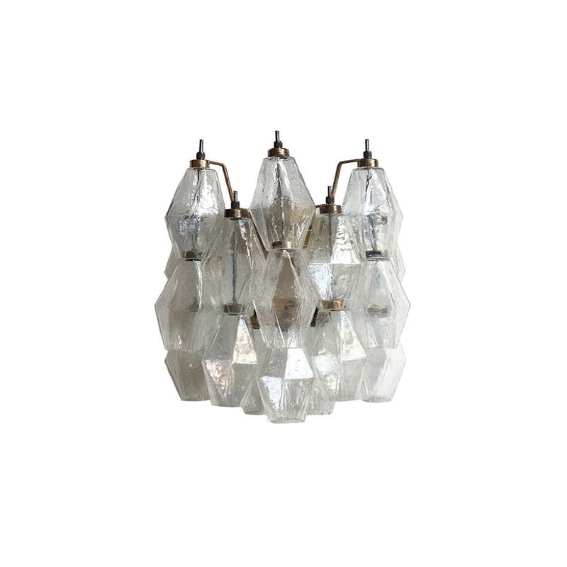 Vintage Murano Poliedri Transparent Wall Lamp Indulge in the sophisticated elegance of this glass decal. Each one features handcrafted glass pieces, expertly made in a luxurious transparent finish, Adding a touch of opulence to any space.