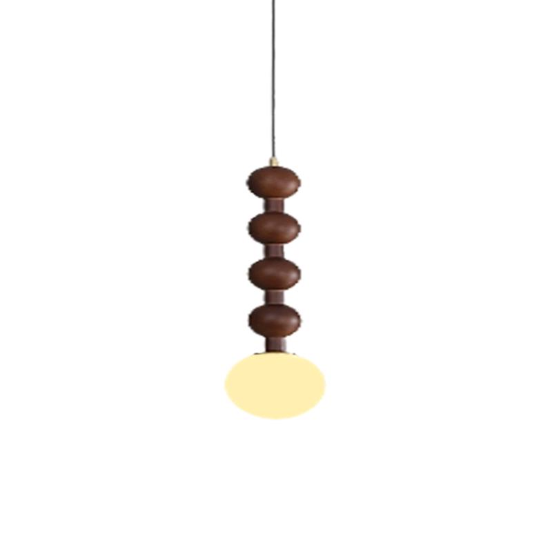 This vintage-inspired pendant lamp combines walnut wood and brass with a glass spherical shade, offering a retro style that adds elegance and warmth to any space.