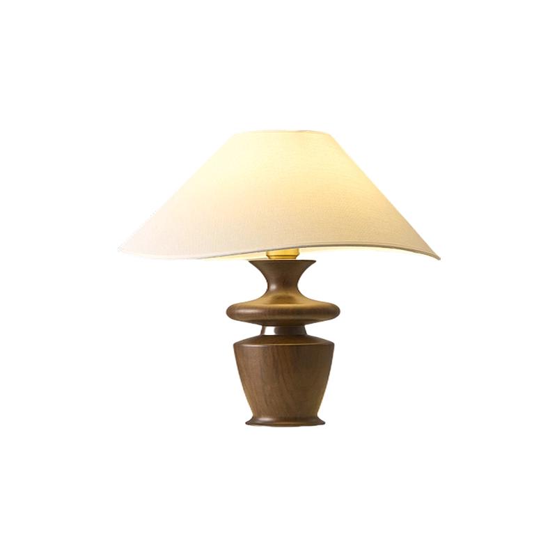 This vintage walnut table lamp features a brass and walnut base with a simple fabric shade. Its retro design adds a sophisticated and warm touch to any room or setting.