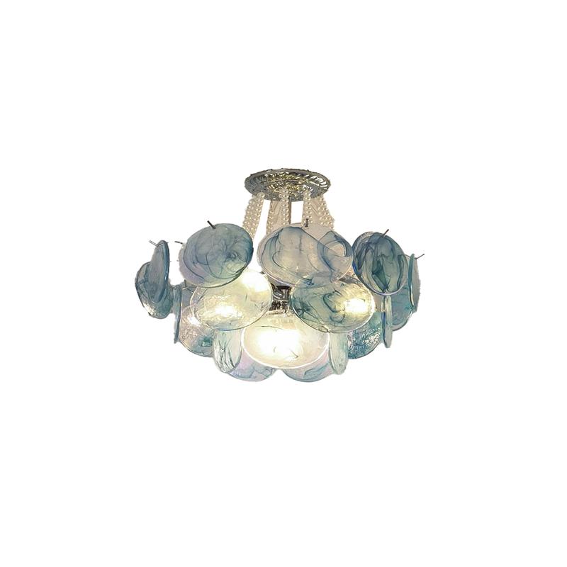 The Vistosi Style Glass Pearl Disc Chandelier features cascading glass discs with a pearlescent finish, arranged in elegant tiers that capture and reflect light with a soft glow. Its design evokes the sophistication of classic Italian Murano style while adding a touch of luxury and refinement to modern interiors. Perfect for dining rooms, living rooms, or entryways, this chandelier creates a statement centerpiece with timeless appeal.