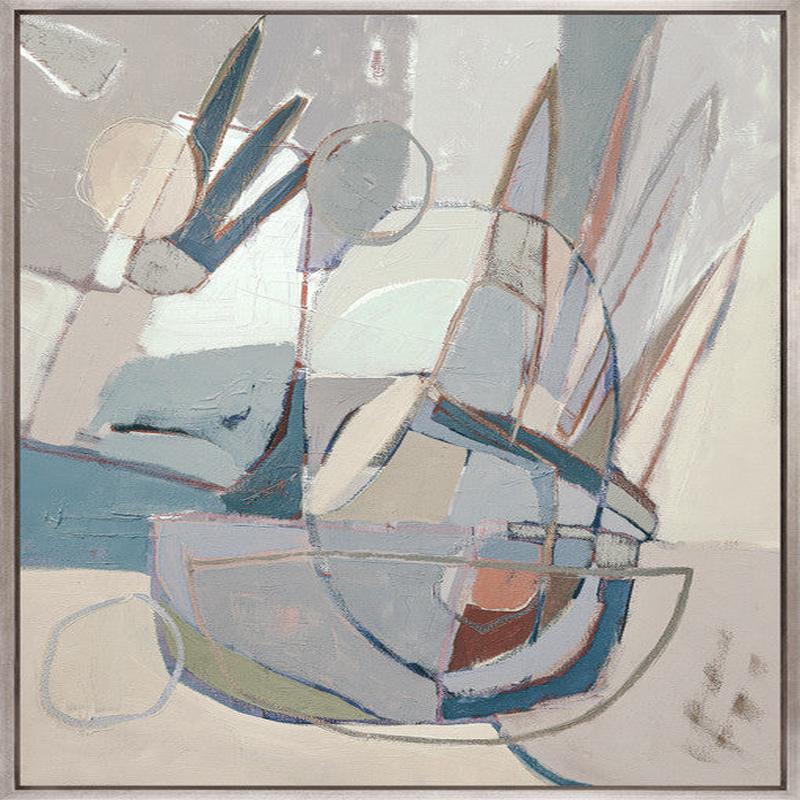 A soft yet striking abstract collection with layered shapes, curved lines, and subtle geometric references. Gentle blues, muted greys, and touches of coral and ochre bring a sense of calm, balance, and quiet sophistication to contemporary interiors.
