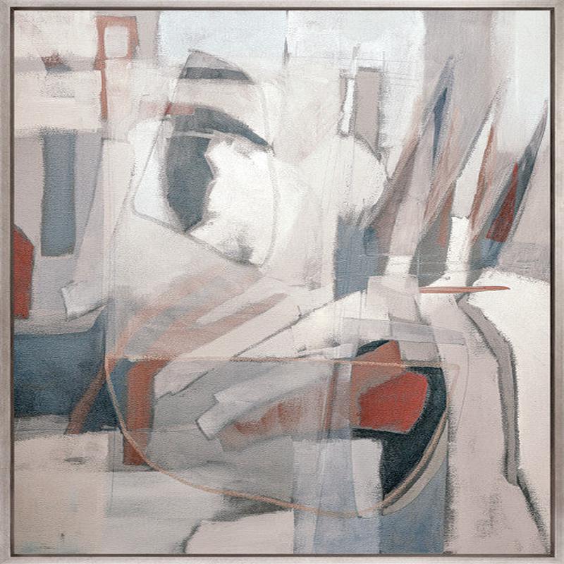 A soft yet striking abstract collection with layered shapes, curved lines, and subtle geometric references. Gentle blues, muted greys, and touches of coral and ochre bring a sense of calm, balance, and quiet sophistication to contemporary interiors.