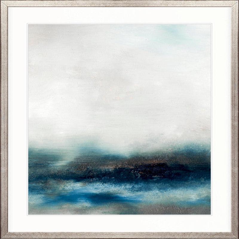 This collection evokes moody seascapes and shifting skies with soft blends of misty blues, deep navy, and touches of warm gold. Fluid brushwork creates a serene sense of movement and atmosphere, perfect for calming, elegant spaces.