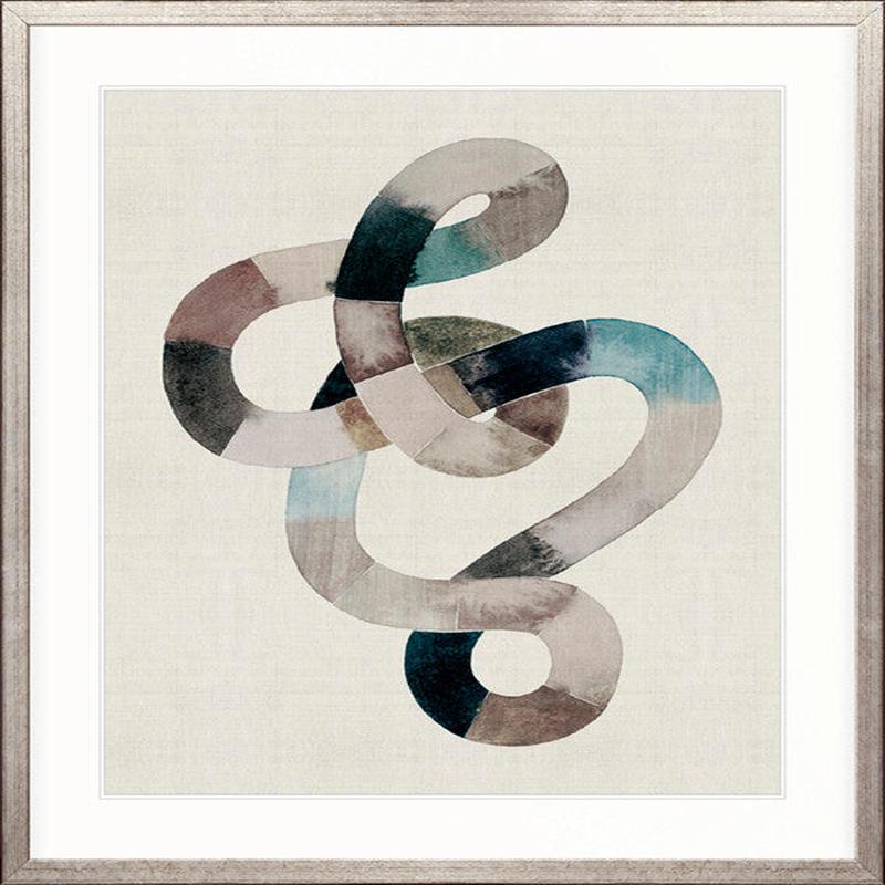 This collection features fluid, looping forms in soft washes of terracotta, taupe, deep teal, and charcoal. The organic shapes and muted tones create a sense of playful movement and subtle sophistication, perfect for modern, artistic interiors.