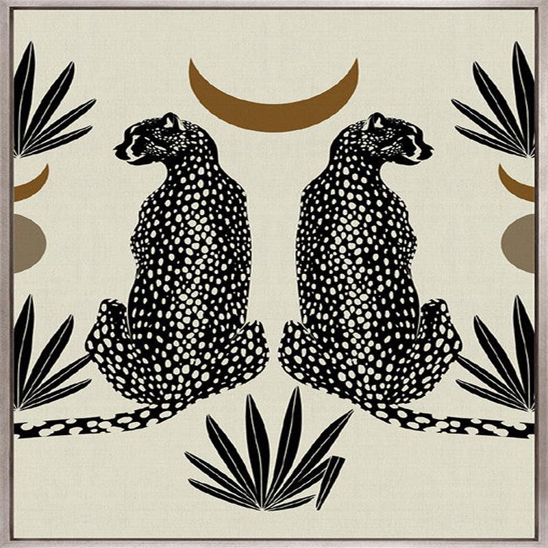 Striking black and neutral illustrations featuring elegant cheetahs, zebras, and graceful figures. Paired with abstract moons, suns, and foliage, these bold graphic artworks add a playful yet sophisticated statement to contemporary and fashion-forward interiors.